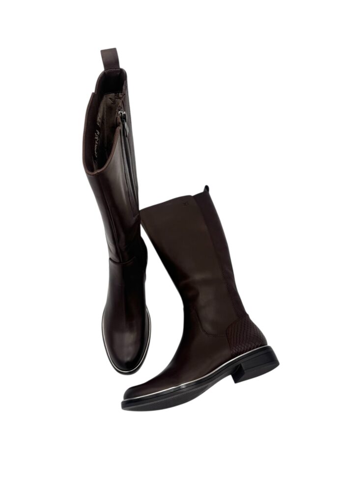 / Caprice: sirolinjaiset & tyylikkäät tumman ruskeat nahka saappaat.