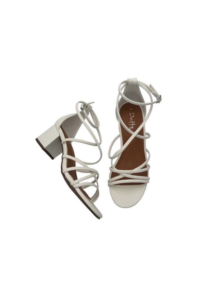 Ajattomat kaunottaret, jotka yhdistät ihanasti arjessa ja juhlassa niin erilaisiin mekkotyyleihin kuin leveälahkeisiin housuihin. Ohuet remmit tuovat naisellisen siroa fiilistä ja valkoinen on värinä ihanan raikas kevään & kesän menoihin. Korko on just sopivan korkuinen & tukeva, näillä jaksaa mennä!