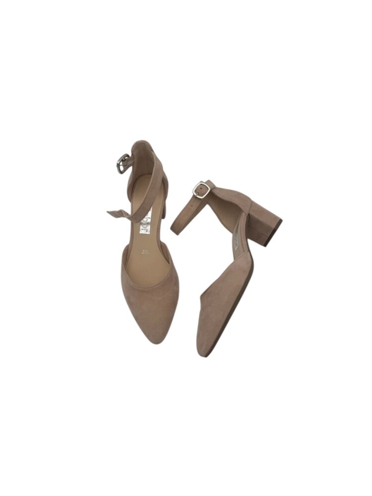 Gabor: klassisen kauniit tolppakorolliset nuden sävyiset nilkkaremmilliset avokkaat.
