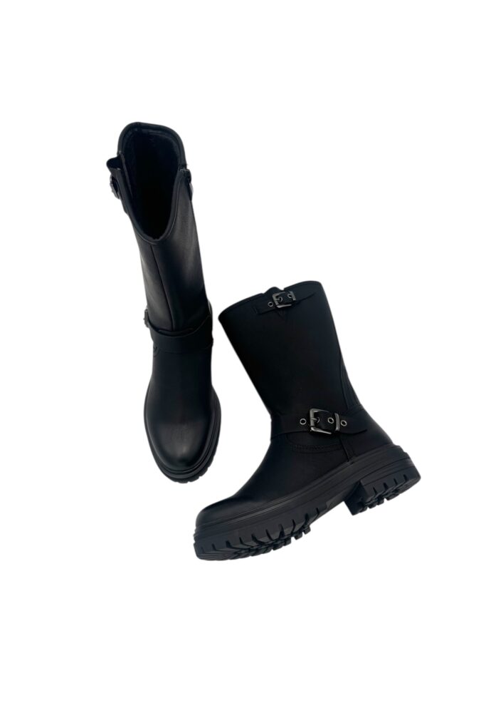 / Migant: super trendikkäät rokahtavat mustat biker saappaat.