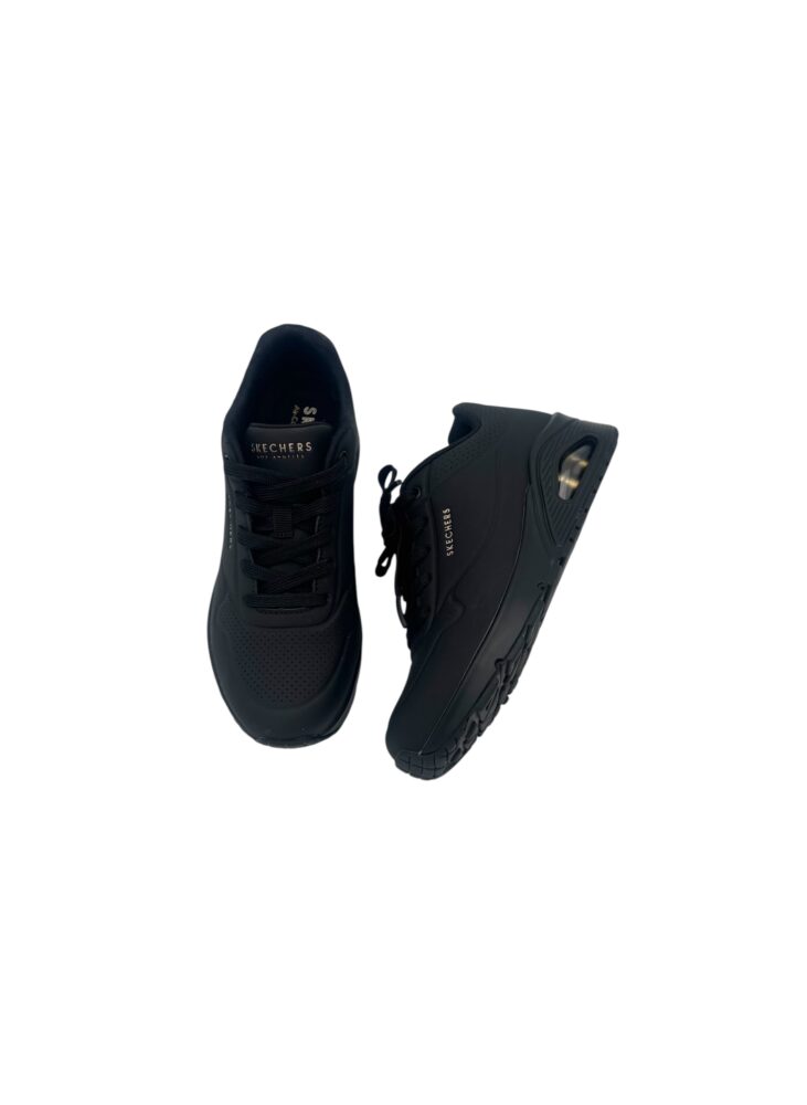 Tämä suosikki ei esittelyitä kaipaa! Skechers Uno on vimpan päälle luotto menopeli, joilla kävelet kuin pilvissä & jaksat pitkätkin päivät! Helppo yhdistellä asuun kuin asuun & niin mukavat jalkaan Skechers Air-Cooled Memory Foam -mukavuuspohjallisen ja näkyvän Skech-Air-ilmapehmustetun välipohjan ansiosta. Varma valinta arkeen, töihin ja vapaa-aikaan niin hameiden, kukkamekkojen kuin farkkujen, leveälahkeisten housujen ja treenivaatteiden kanssa.