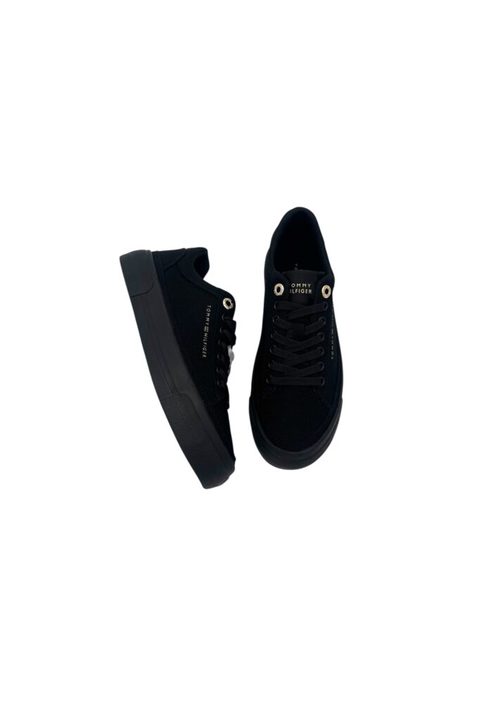 Tommy Hilfiger: yksinkertaisen tyylikkäät kokomustat kangas tennarit