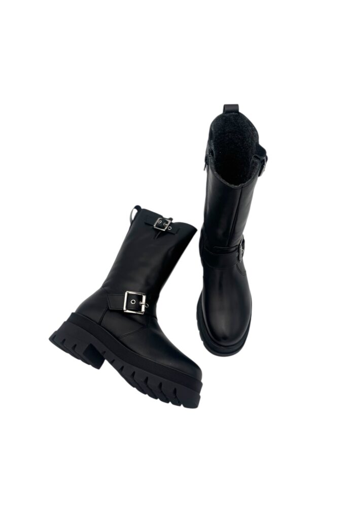/ Vintro: rouheat & rokkaavat pidempi vartiset mustat vettähylkivät Mimmi solki bikerit.